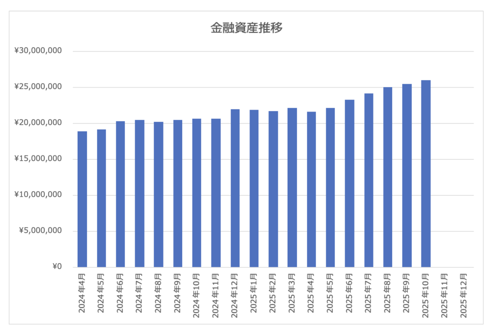 集計自体は2024年4月からスタートしているので、以降の金融資産推移もグラフにまとめてみました。